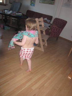 Heima hjá mær snýr alt seg um børnini í løtuni. Madeleine er miðjan, sum vit snara um, Magna hámetir systkinabarnið og hevur her latið seg í hennara klæði: svimjidraktin er sum eitt smalt skjúrt og turriklæðið feminint draperað um herðarnar, Herbert heldur, at skúlaarbeiðið er mega áhugavert og situr næstan uppi í skúlatingunum og fylgir við. Omman og ommudiddan njóta at fylgja við í barnaløtuni, sum var norsk og var um bátar, ein gentubát og ein dreingjabát, tað sá út til at vera í Mykinesi , og aldurnar kundu eisini verið í Føroyum.