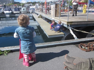 Í ár eru tað Guðný og Markús og Kári, sum eru tey fyrstu at vitja. Tey komu við tí góða veðrinum í gjár. Herbert og Kári sampakkaðu væl beinanvegin, tað er tað besta av øllum. Teir práta og skilja hvønn annan. Vit hava longu havt fleiri familjuhøld. Í gjár vóru vit í Hósvík og hátíðarhildu Brand, og í dag eru vit í Leivsgøtu og “ballast”. Allarbest at Hallur er eisini heima.