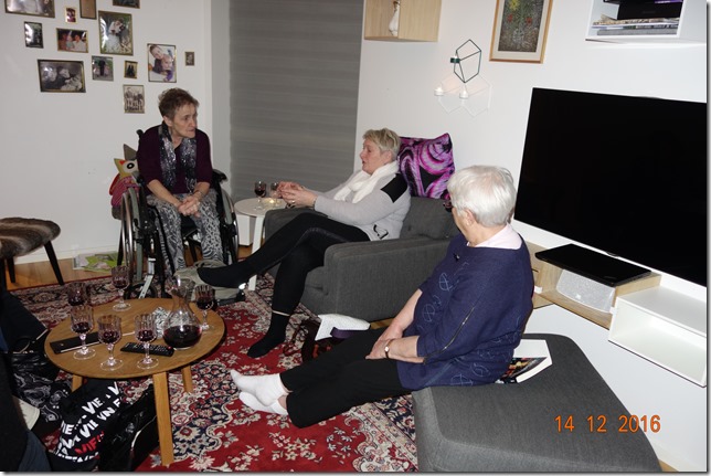 Gestinir komu klokkan fýra, og vit fóru til borðs klokkan seks, vit vóru 12 fólk. Beiggi Michel við børnum og einum dóttursjeiki, mamma Michel og so eg og Bíusa húski.